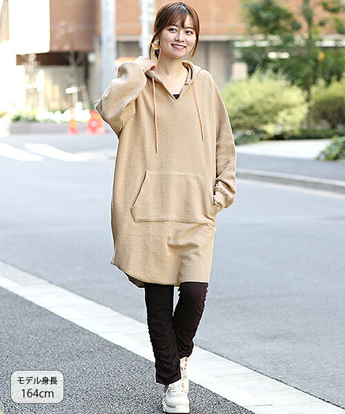 ◆商品について◆ シンプル&カジュアルな、楽ちんパーカーワンピースポコポコと表情のある、ウェーブした裏毛素材が可愛らしい♪
