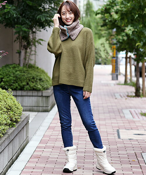 履き口部分はドローコードが付いているので調節可能!冬の冷たい外気から足首まわりを守ってくれるのも嬉しいポイント◎カジュアルなコーディネートにはもちろん、キレイめなスタイルにも、かわいく履きこなせます。