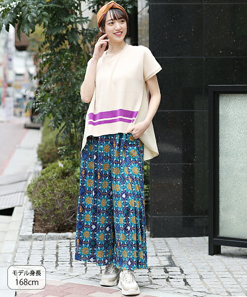 明るいカラートーンで、裾の2本のラインがポイントです。