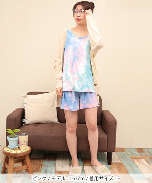 【WEB限定★SALE】 パジャマ ルームウェア 部屋着 ワンマイルウェア トップス パンツ セットアップ 上下セット レディース 春 夏 半袖 かわいい おしゃれ シエスタ siesta エスニック チチカカ TITICACA / シエスタタイダイタンクトップ上下セット zkscb2322