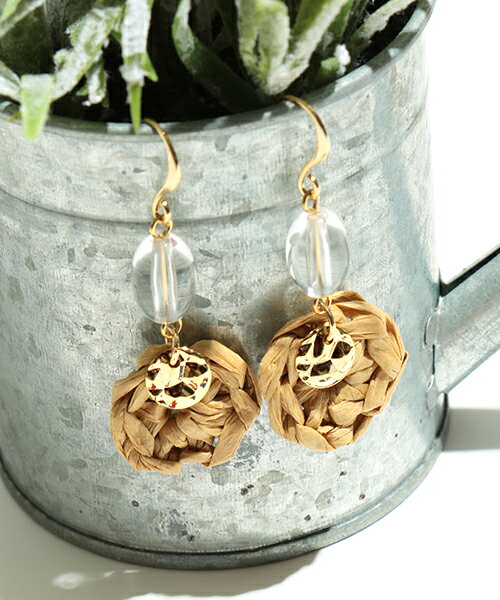 ◆商品について◆ エスニックな雰囲気のフラワーパーツが可愛いピアスゴールドのメタルと肌馴染みの良いナチュラルなパーツがさりげなくコーデを彩ります。