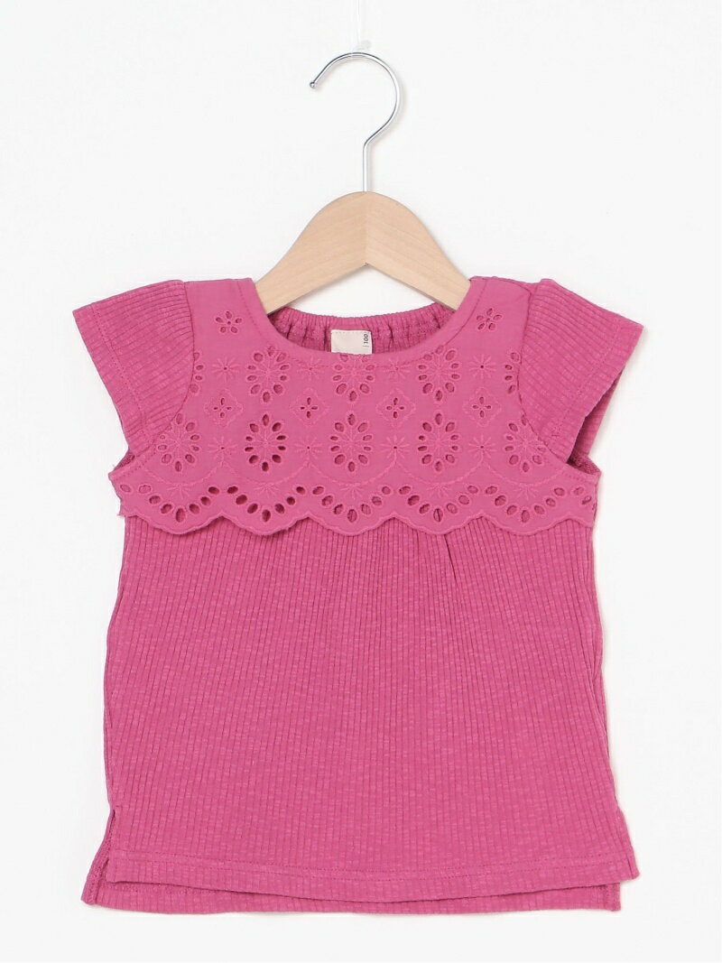 NARUMIYA ONLINE(ナルミヤオンライン)胸レースヨークTシャツ胸元をレースで愛らしく彩ったTシャツです。